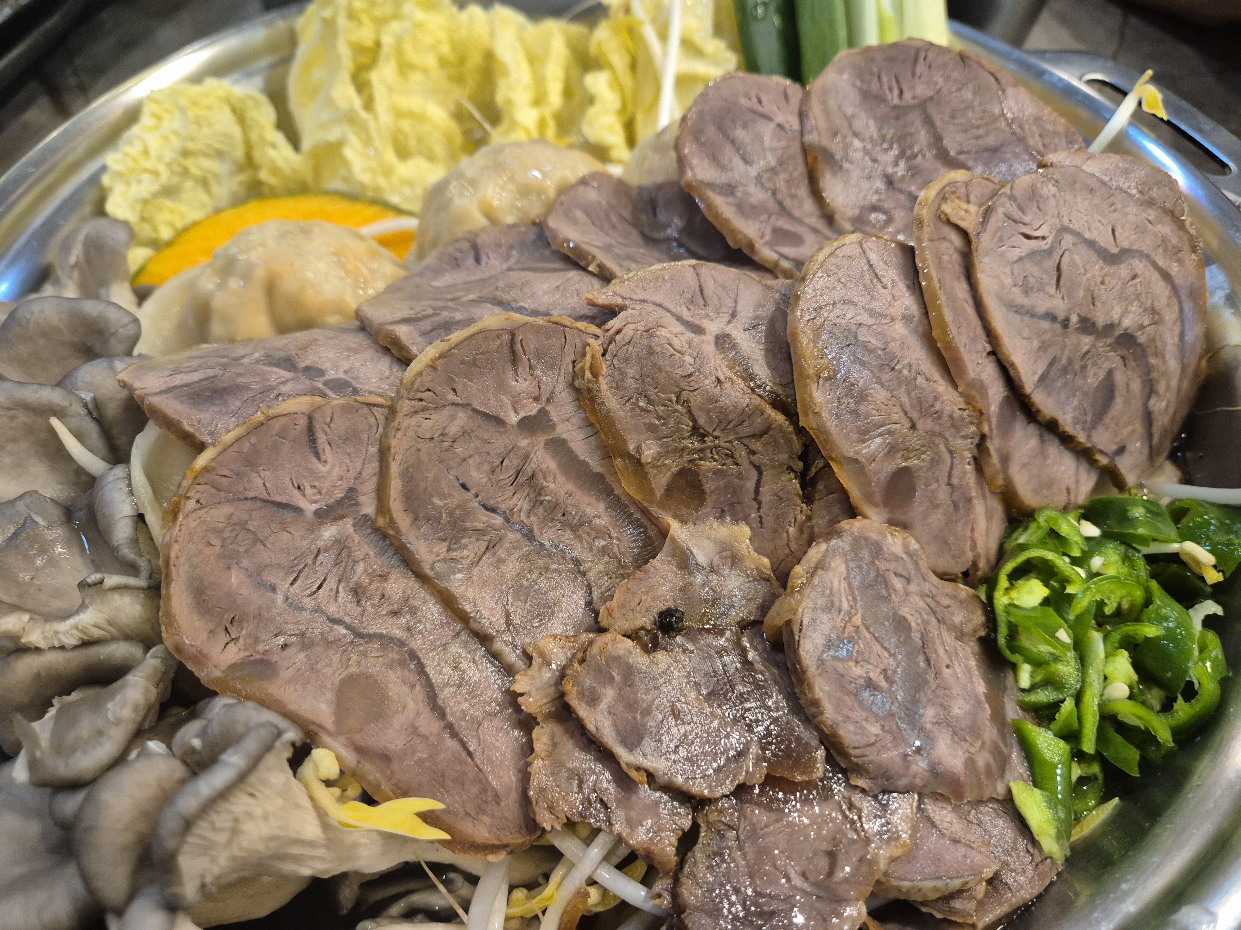 기름이 많지 않아 느끼하지 않고, 전골 국물과 함께 곁들이면 감칠맛이 배가됩니다.