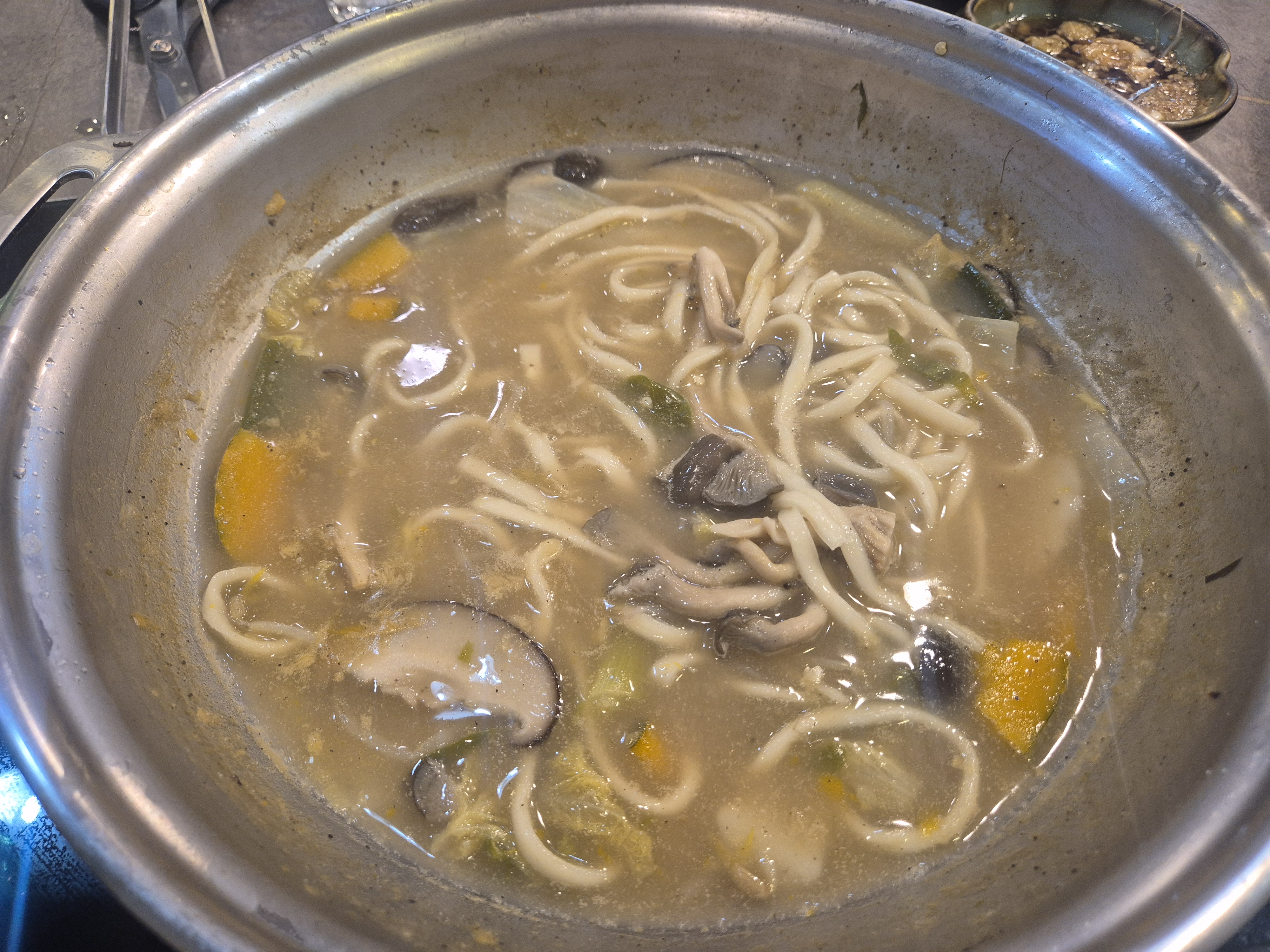 전골을 어느 정도 즐기고 난 뒤, 면사리를 추가하는 것이 이 집의 진리입니다.